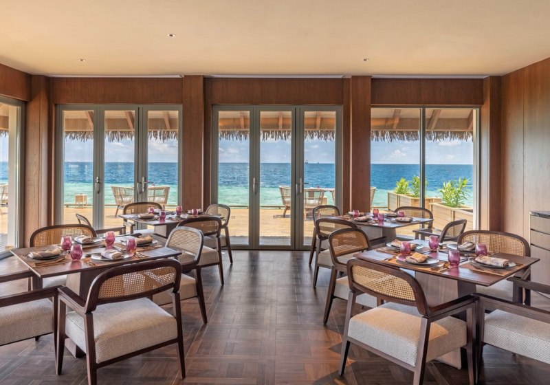 Fünf Restaurants und Bars geben Eurem Tag Struktur: mediterrane Küche, Bangkok Street Food und maledivische Spezialitäten bilden den kulinarischen Kern. Ein Überwasser‑Restaurant setzt den Rahmen am Meer, das Ganztagsrestaurant hält flexible Zeiten, und ein Restaurant ist explizit für Frühstück und Abendessen ausgerichtet.