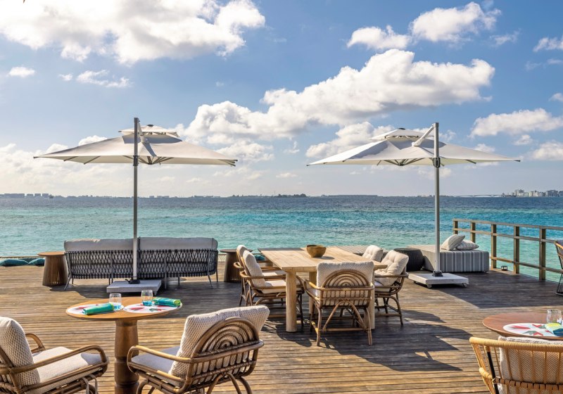 Die Villa-Welt prägt das Gefühl von Rückzug: private Terrassen, teils eigener Pool, direkter Strand- oder Meereszugang. Kulinarisch wechselt Ihr zwischen mediterranen Akzenten, Bangkok Street Food, maledivischen Spezialitäten und einem Überwasser-Restaurant. Das Beachclub-Erlebnis mit Rooftop-Bar verlagert den Abend nach oben – mit Aussicht und lässigem Tempo.