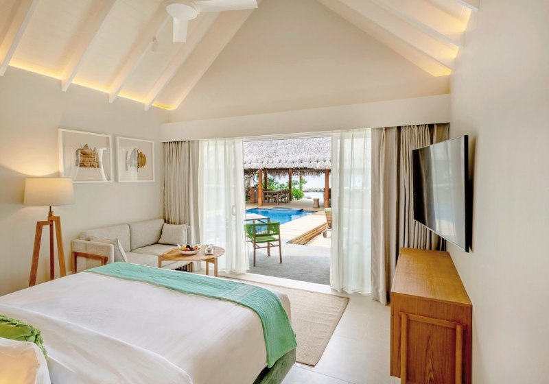 - Villenwahl: Strand- oder Überwasservillen, teils mit Privatpool.
