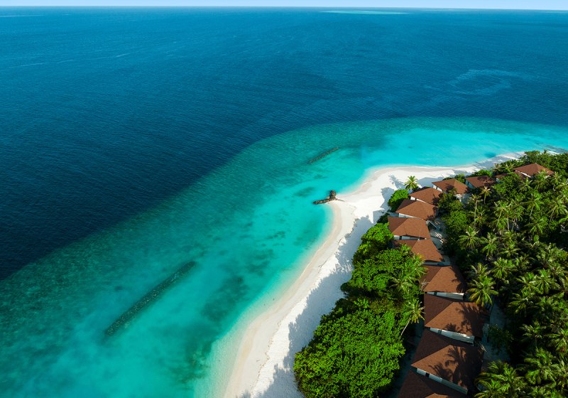 Ihr urlaubt auf einer etwa 650 mal 195 Meter großen Insel im Norden der Malediven, im Baa-Atoll. Das Hausriff liegt direkt vor der Insel, sodass Ihr vom Strand oder Steg schnell ins klare Wasser gelangt und die Unterwasserwelt unmittelbar erreichbar ist.