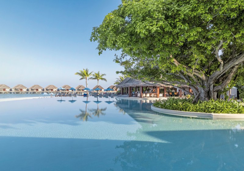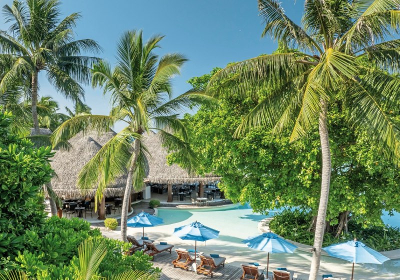 Dusit Thani Maldives kombiniert großzügige Villen, einen 750-Quadratmeter-Infinity-Pool und vielseitige Küche mit ruhiger Inselatmosphäre. Familien schätzen Kinderclub und Babysitter-Service, Paare die Privatsphäre der Overwater-Optionen. Die Lage im UNESCO-Biosphärenreservat sorgt für eindrucksvolle Naturerlebnisse rund ums Jahr.