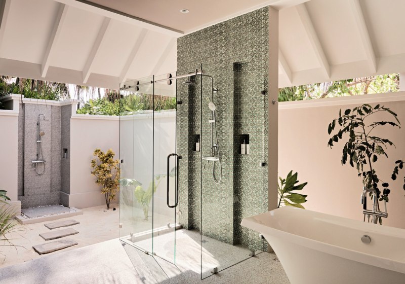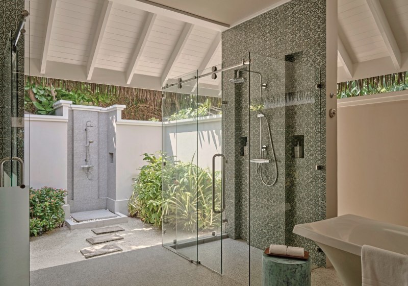 Die Lagoon Villa bietet etwa 145 m², die Beach Villa etwa 205 m². Die Ocean Water Pool Villa verbindet rund 180 m² mit einem privaten Pool von etwa 6 m². Je nach Kategorie erwartet Euch ein Außenbadezimmer mit Badewanne und Außendusche. Das Ergebnis: klare Linien, viel Platz, ausgesuchte Ruhe. Highlight: Sundecks mit direktem Lagunenzugang in den Overwater-Villen.
