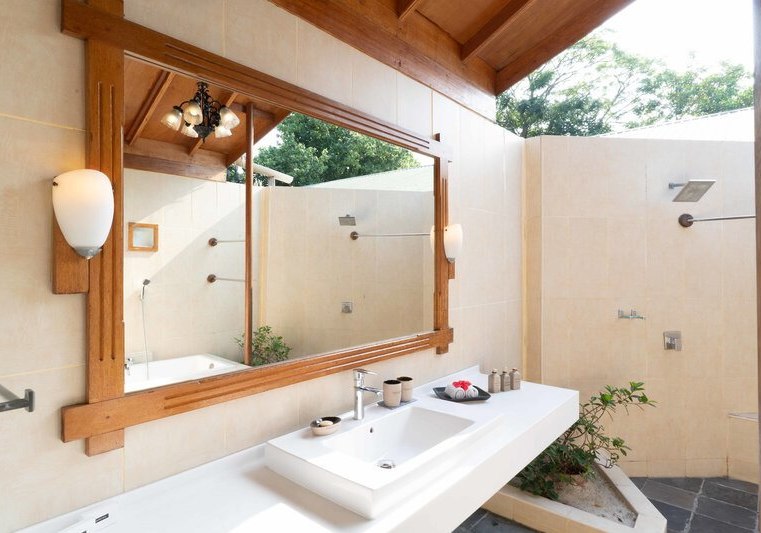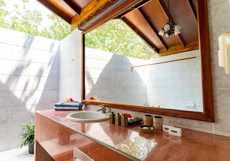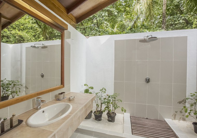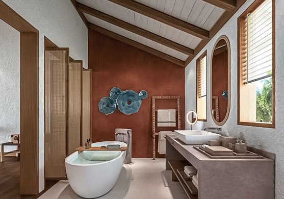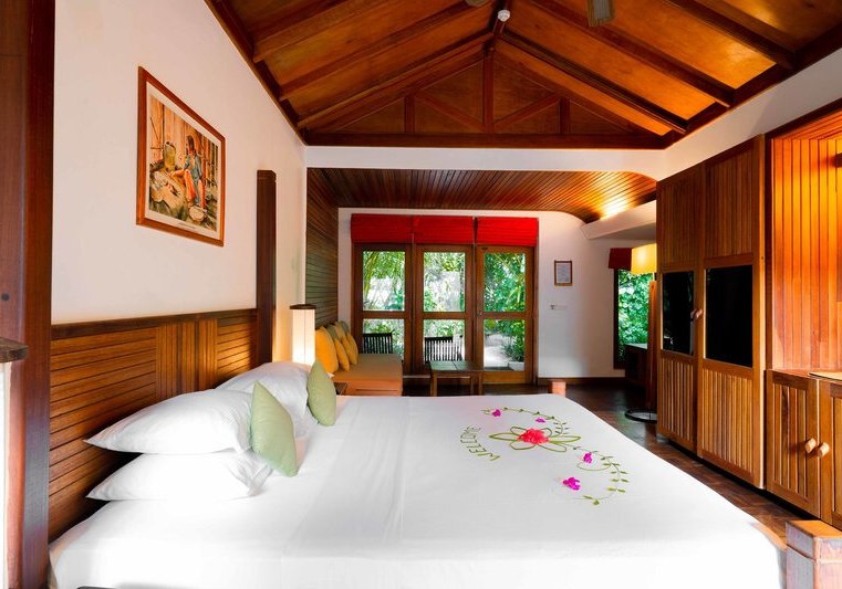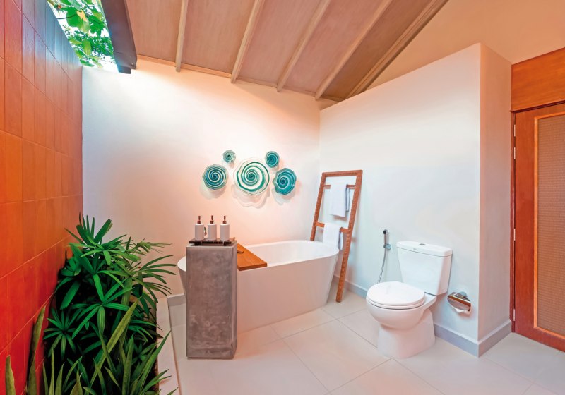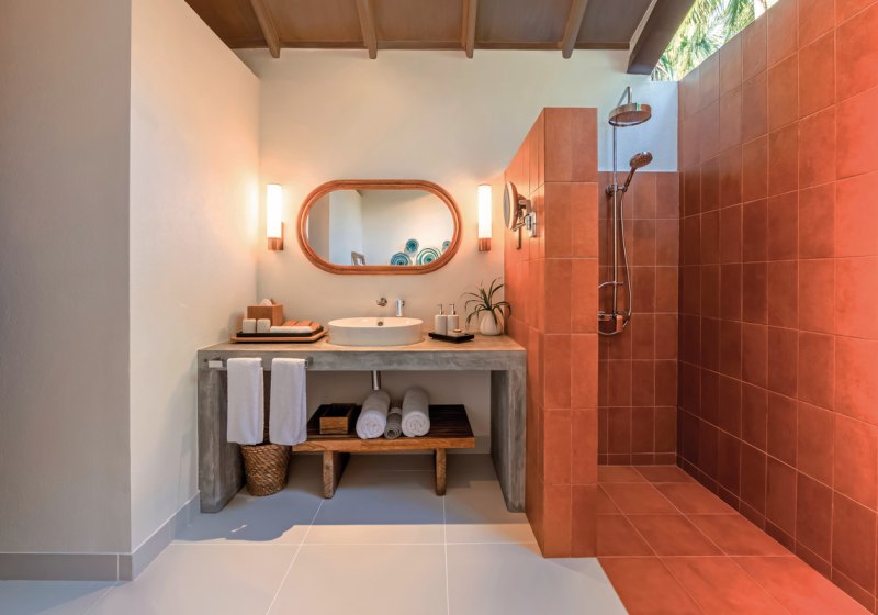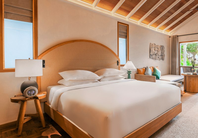 Ihr wohnt in Villen mit klaren Ausstattungsstandards: Klimaanlage, Safe, TV, Telefon sowie Kaffee- und Teezubereiter geben verlässlichen Komfort. Terrassen öffnen den Blick ins Grün oder zur Lagune. Bäder sind teils halboffen mit Regendusche und Badewanne; in den Garden Villen erwartet Euch zusätzlich eine eigene Outdoor-Dusche.