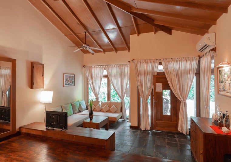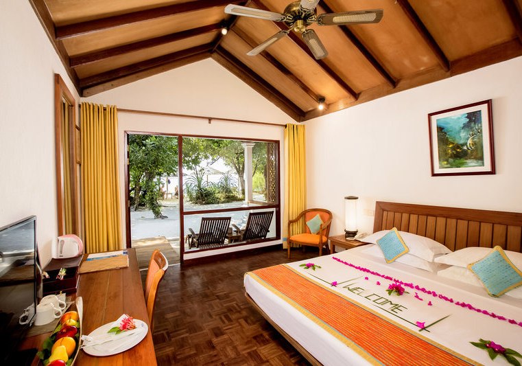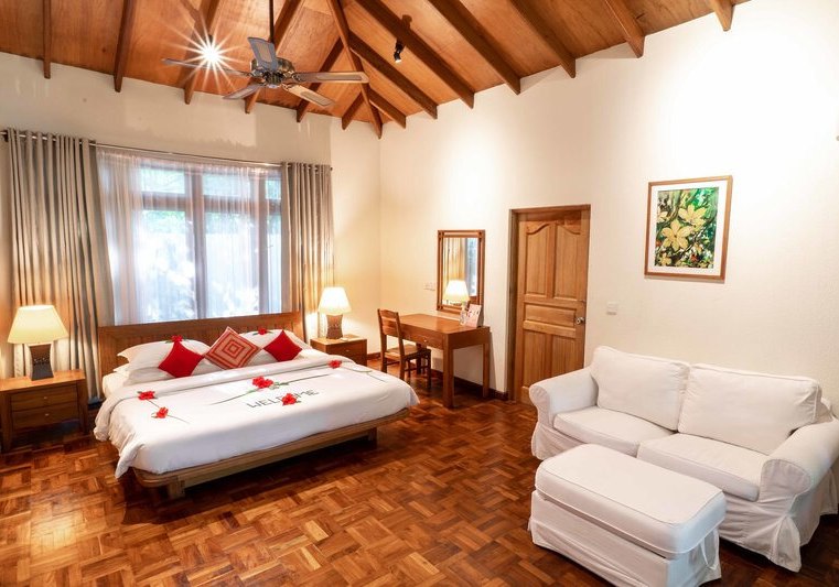 Über dem Wasser wohnt Ihr auf Stelzen mit Meerblick und direktem Zugang zur Lagune – der Schritt ins Blau ist hier Programm. Familien- und Nichtraucheroptionen, schallisolierende Details sowie Kingsize-Betten, Ventilator und WLAN runden das Bild ab. So wählt Ihr zwischen Gartenruhe und Wasserfokus, ohne Abstriche beim Kernkomfort.