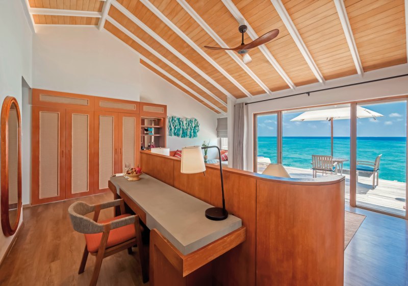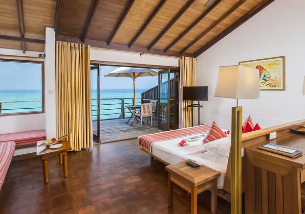 - Über dem Wasser: Over Water Villen mit Meerblick und Lagunenzugang auf Stelzen.