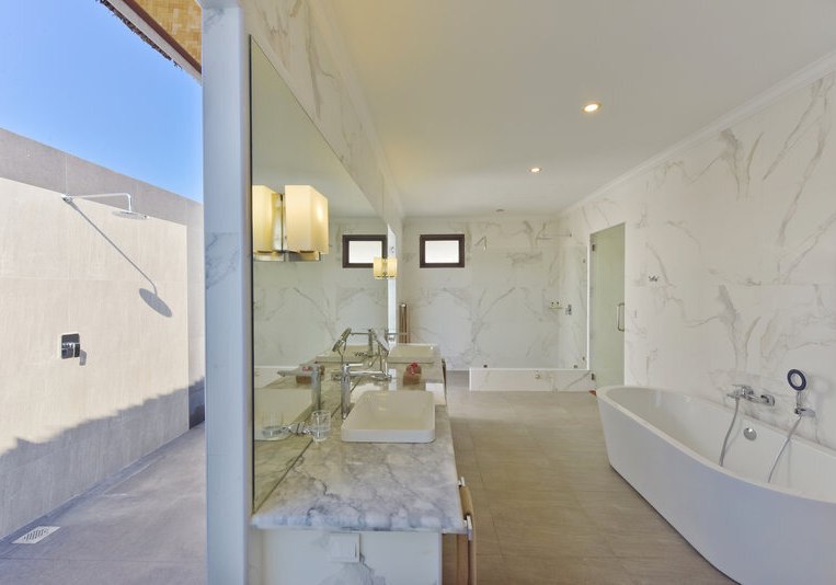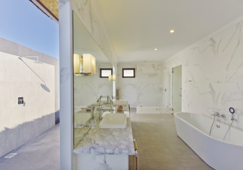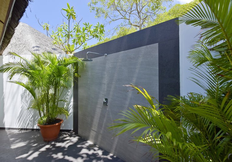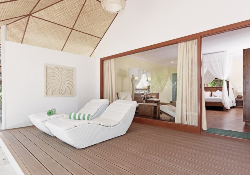 Alle Bungalows kommen mit Bad mit Wanne, separater Dusche/WC und zusätzlicher Außendusche. Auf der möblierten Terrasse nehmt Ihr die Szenerie mit. Klimaanlage, Sat-TV, Telefon, Föhn, Bademantel, Minikühlschrank sowie Tee- und Kaffeezubereiter runden den Komfort ab – reduziert auf das Wesentliche.
