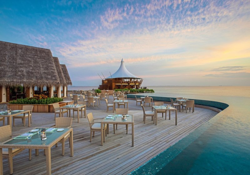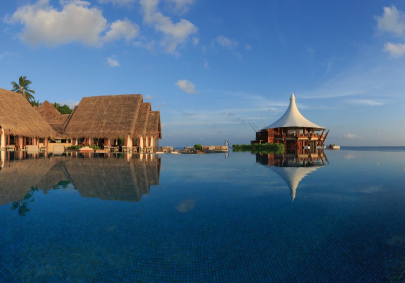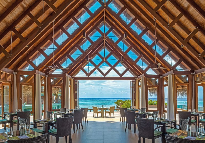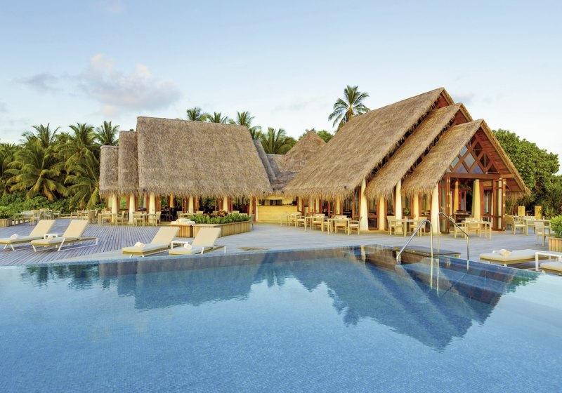 Euch erwartet ein diskreter Service mit überschaubaren Wegen: Rezeption, Lobby und Shop liegen zentral, der Außenpool ergänzt das Meer. Mindestalter 8 Jahre sorgt für eine ruhige Gästestruktur. Ihr wählt zwischen Strand- und Wasservillen, teils mit privatem Pool. Abends locken Bar und Lounge, tagsüber das Baros Marine Center. Highlight: Überschaubares Resort mit 75 Einheiten und klarer Ausrichtung auf Ruhe.