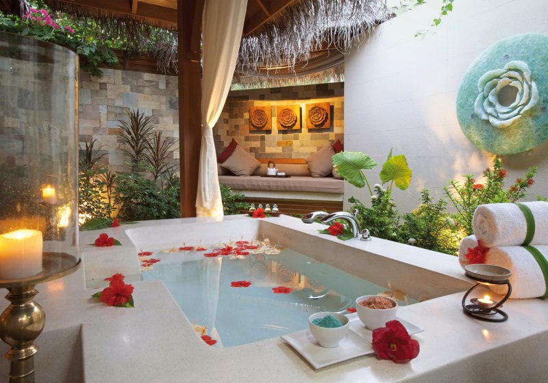 Die Villen orientieren sich an Strand und Wasser. Strand- und Wasservillen, teils mit privatem Pool, bieten direkten Zugang zur Lagune oder zum Strand. Open-Air-Badezimmer mit Dusche und/oder Badewanne schaffen Luft und Licht. Highlight: Direkter Wasser- oder Strandzugang je nach gewünschter Perspektive.