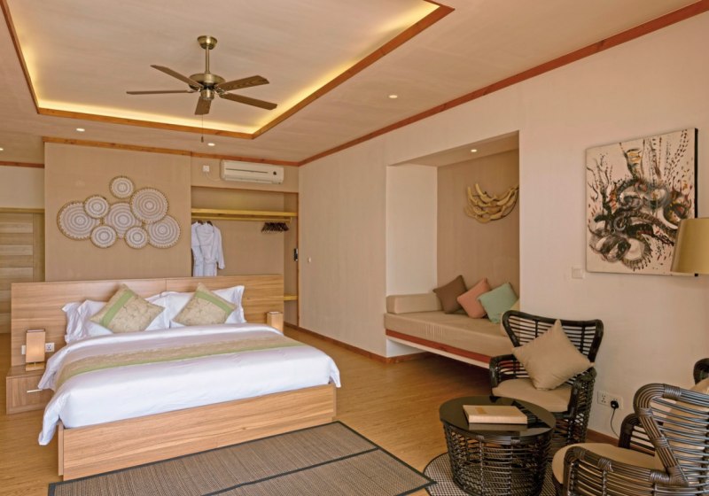 Ob Ihr zu zweit reist oder mit Familie: Die Bandbreite von Strand- bis Wasservillen, optional mit privatem Pool, gibt Eurem Aufenthalt Struktur und Wahlfreiheit. Kulinarisch wechselt Ihr zwischen internationalen Buffets und À-la-carte-Spezialitäten, abends begleitet von Programm oder Livemusik. Die Insel erreicht Ihr nach etwa 40 Minuten per Wasserflugzeug – ankommen, aussteigen, durchatmen.