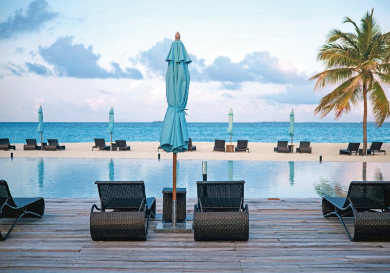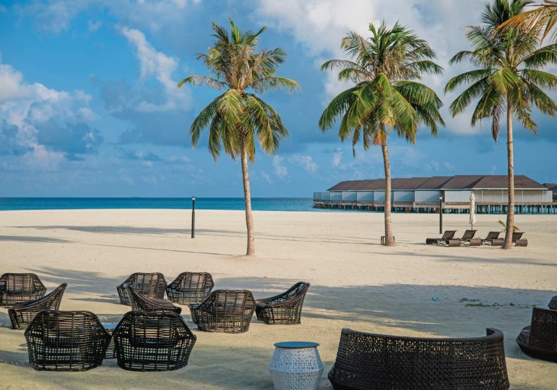Die Insel des Brennia Kottefaru liegt im Raa Atoll und ist per Wasserflugzeug in etwa 40 Minuten erreichbar. Das Setting ist komprimiert und naturnah: Sand, Palmen, flaches Wasser – und ein Hausriff, das zum Schnorcheln und Tauchen einlädt. Die Wege bleiben kurz, die Orientierung klar. Ihr bewegt Euch zwischen Strand, Pool, Restaurants und Aktivitäten ohne Umwege.