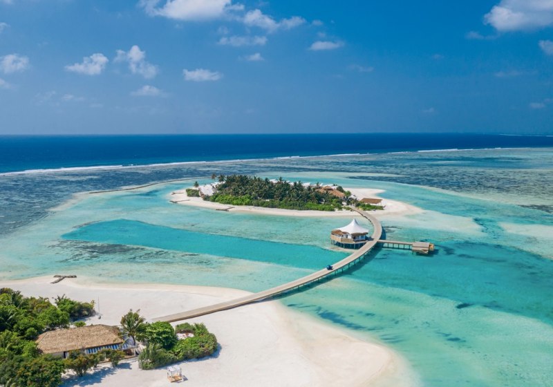 Im Cinnamon Hakuraa Huraa Maldives erlebt Ihr ein Resort auf zwei Inseln, verbunden durch einen Steg – mit einer separaten Nebeninsel als exklusivem Bereich für Platinum Beach Bungalows. Die Stimmung ist entspannt und klar strukturiert: ruhige Ecken am Wasser, lebendigere Zonen an Pool und Bars, dazwischen Wege durch tropisches Grün. Ihr entscheidet, ob Ihr Nähe zum Geschehen sucht oder auf die zurückgenommene Atmosphäre der Nebeninsel setzt.