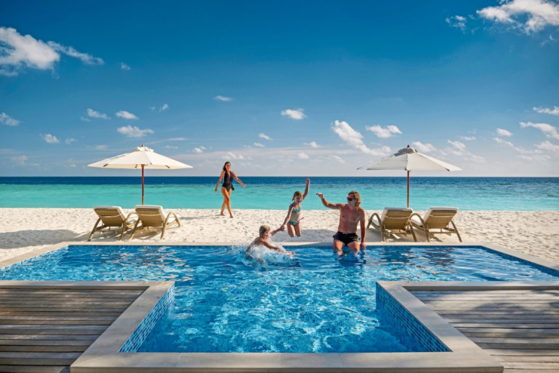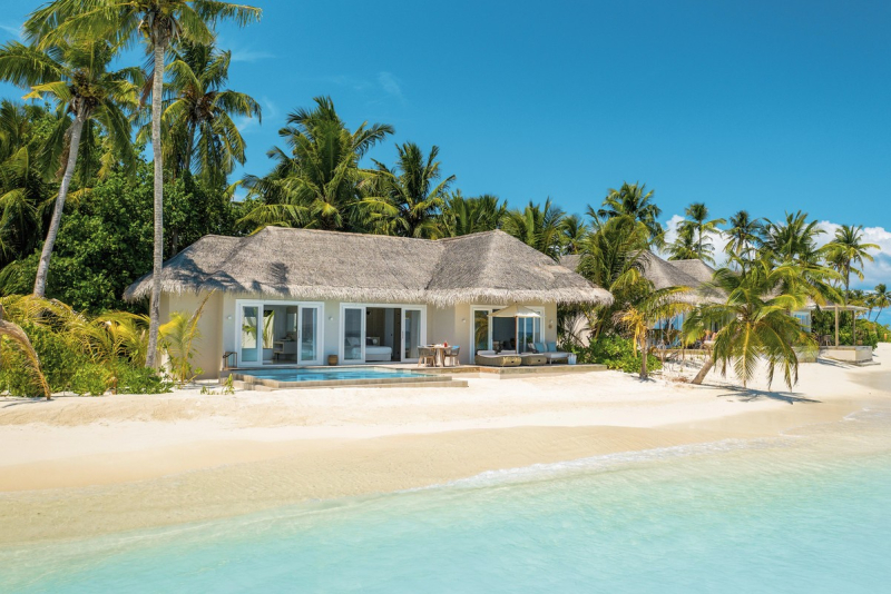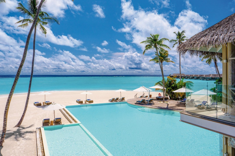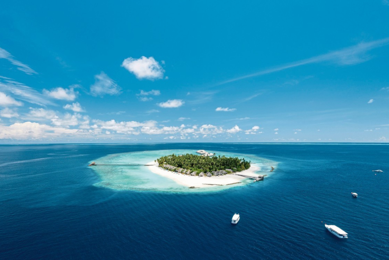 Das Resort ist auf der malerischen Insel Maagau, mitten im Dhaalu-Atoll, direkt am Strand gelegen. Der Transfer vom internationalen Flughafen Male dauert nur etwa 45 Minuten mit einem Wasserflugzeug, was bereits ein unvergessliches Erlebnis an sich ist.