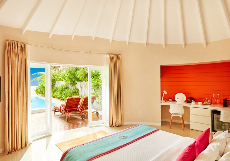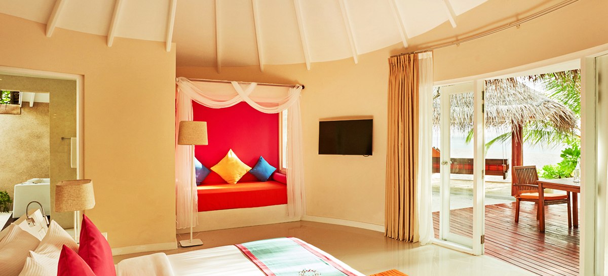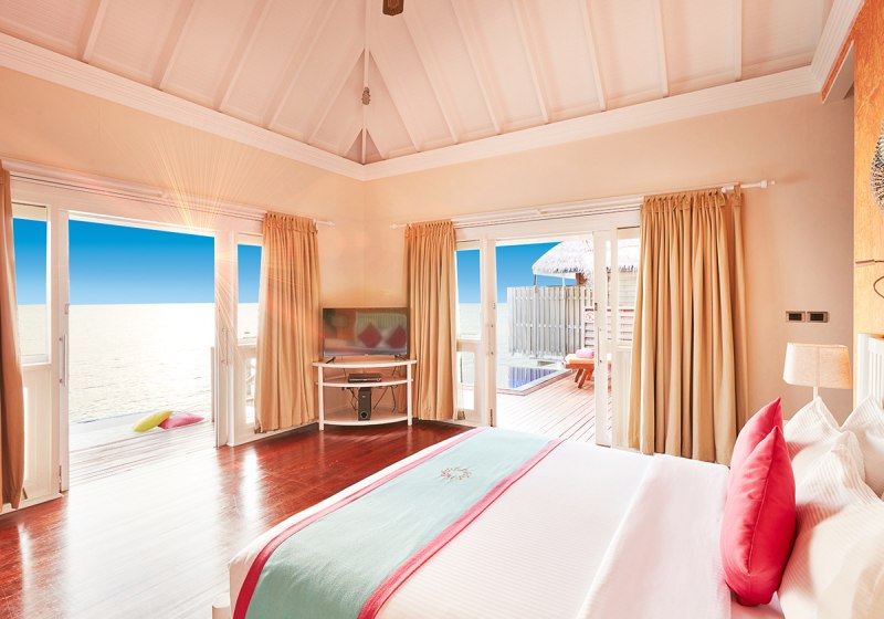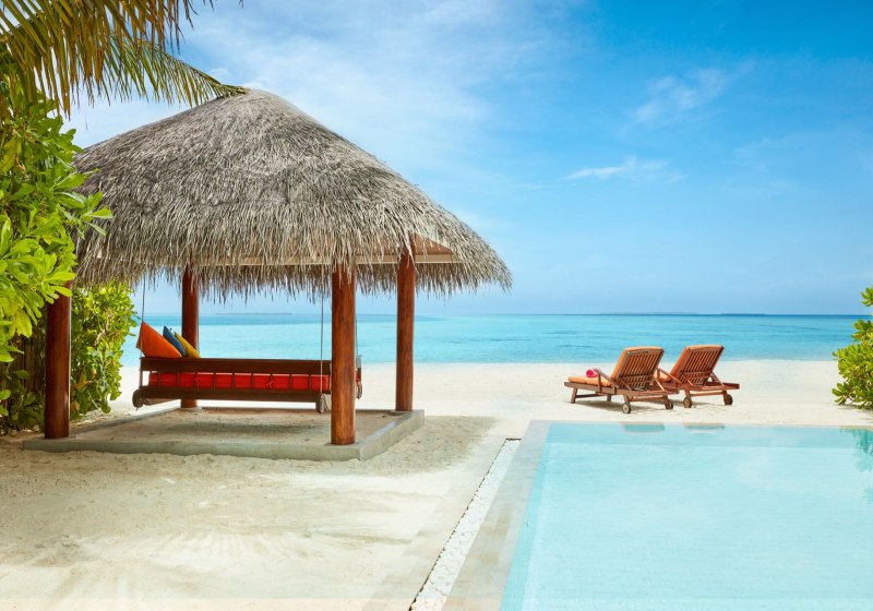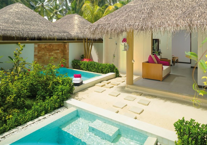 Ihr w e4hlt zwischen 62 Beach Villen am Strand und 41 Wasserbungalows fcber der Lagune. Markant sind private Sonnendecks, teils mit maledivischer Schaukel. Einige Kategorien verf fcgen fcber einen eigenen Pool oder einen Whirlpool f fcr zus e4tzliche Privatsph e4re.