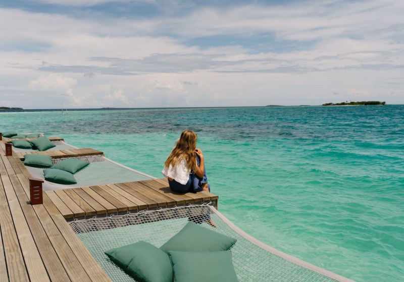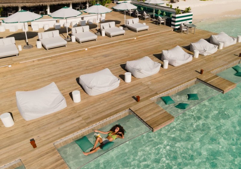 - Sonnendeck: Private Decks, teils mit maledivischer Schaukel.