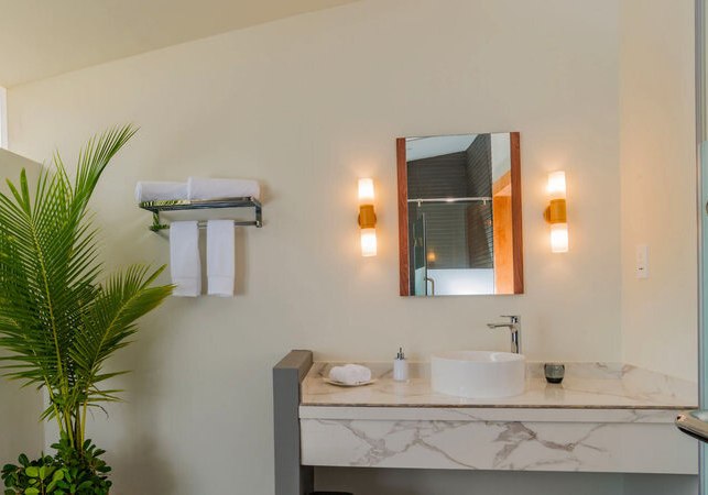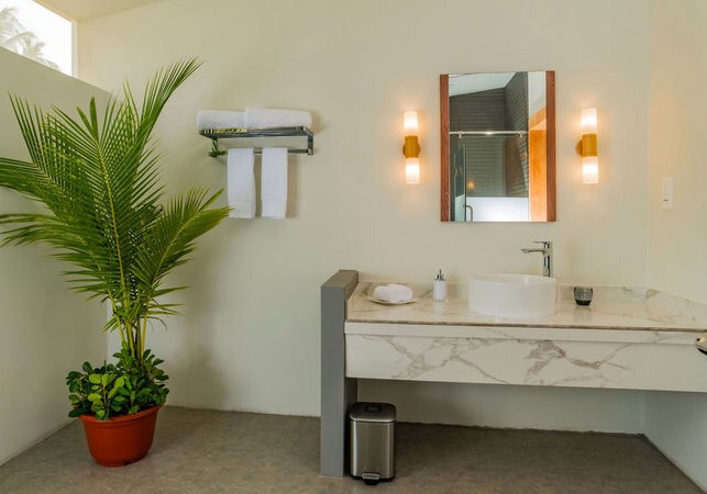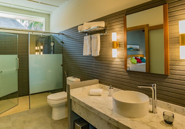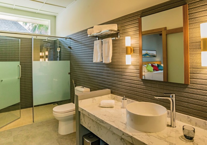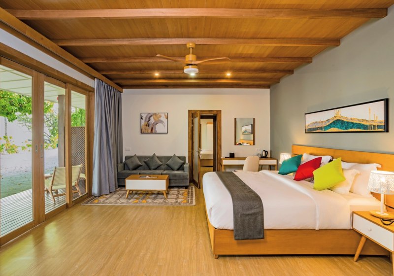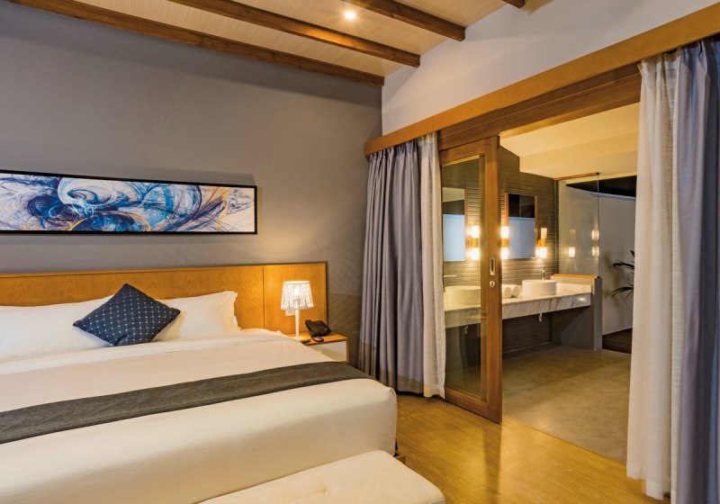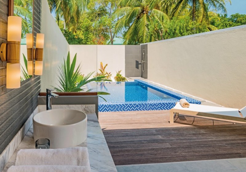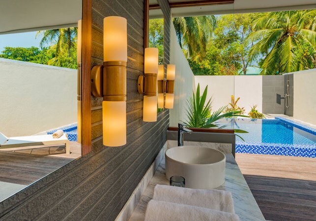 Mehr Raum geben die freistehenden Deluxe Garden Villas mit circa 65 Quadratmetern inkl. Außenbereich und Außenregendusche. Strandnähe bieten Beach Villas im Block mit neun Einheiten, Meerblick und direktem Strandzugang. Die freistehende Deluxe Beach Villa kombiniert Meerblick mit direktem Zugang. Maximal privat wird es in der Beach Pool Villa mit etwa 104 Quadratmetern inkl. Außenbereich, Regendusche im Garten und privatem Pool.