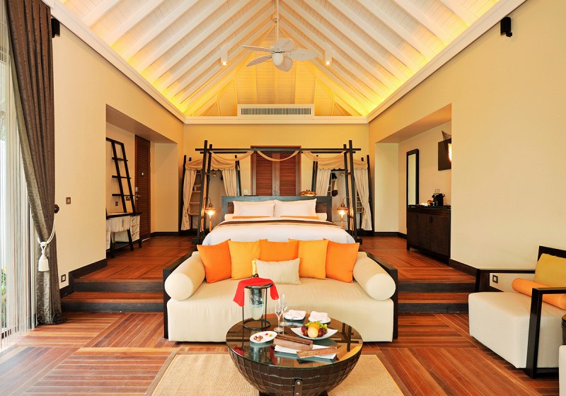 Die 122 Villen setzen auf Raum, Privatsphäre und klare Ausstattung. Garden Villas betten Euch grün und ruhig, Beach Villas bieten direkten Sandkontakt und einen privaten Pool für strukturierte Tagesroutinen zwischen Schwimmen und Lesen. Die Ocean Villas stehen auf Stelzen, dazu ein privater Infinitypool – Wasserblick und kurze Wege bestimmen den Ablauf. Jede Villa verfügt über Terrasse, Dusche/WC, Bademantel/Slipper, Föhn, Klimaanlage, TV, Telefon und Minibar.