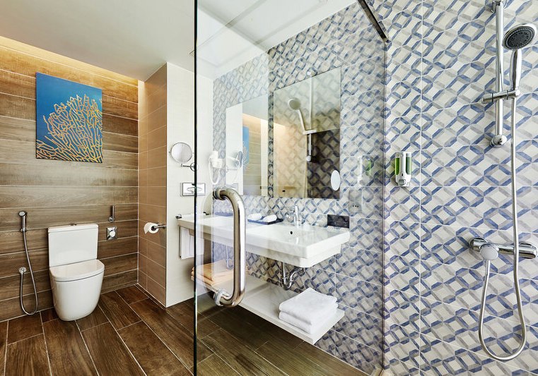 Aus 264 Zimmern wählt Ihr zwischen Insel- und Overwater-Kategorien. Doppelzimmer mit Meerblick bieten etwa 31 m² und einen Balkon, Beach Rooms Ocean Front eine Terrasse nahe dem Strand. Overwater Juniorsuiten starten bei rund 37 m² mit direktem Meerzugang, Bademänteln, Hausschuhen und praktischem Getränkespender.
