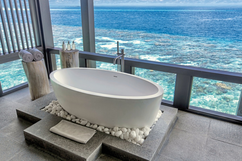 Das All-Inclusive-Angebot des Kudadoo Maldives Private Island umfasst ein À-la-carte-Frühstück, das auf dem Zimmer serviert wird, sowie ein Mittags- und Abendessen nach Menüwahl. Das Hotel verfügt über zwei Restaurants, darunter das exklusive '5.8 Undersea Restaurant', das gegen Aufpreis erhältlich ist, und die 'Kashibo Bar', die im All-Inclusive-Paket inbegriffen ist.Ausstattung