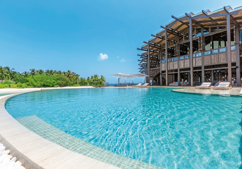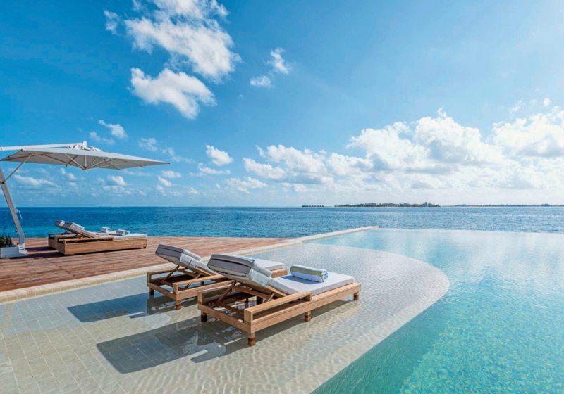 - Großzügige Suiten: 300–380 qm Wohnfläche mit privatem Infinity-Pool über der Lagune.