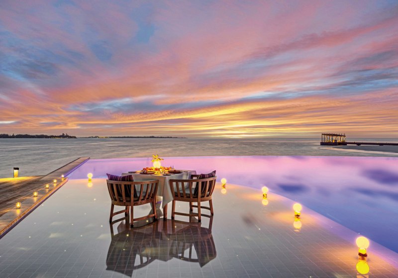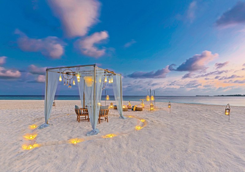 Kulinarisch genießt Ihr Flexibilität: Das Inselrestaurant und eine Bar bilden die Basis, Destination Dining verlegt Euer Dinner an unterschiedliche Orte der Insel. Zusätzlich habt Ihr Zugang zu den Restaurants Kashibo und Canneli im benachbarten Hurawalhi Island Resort und erweitert so Stil und Abwechslung Eurer Mahlzeiten.
