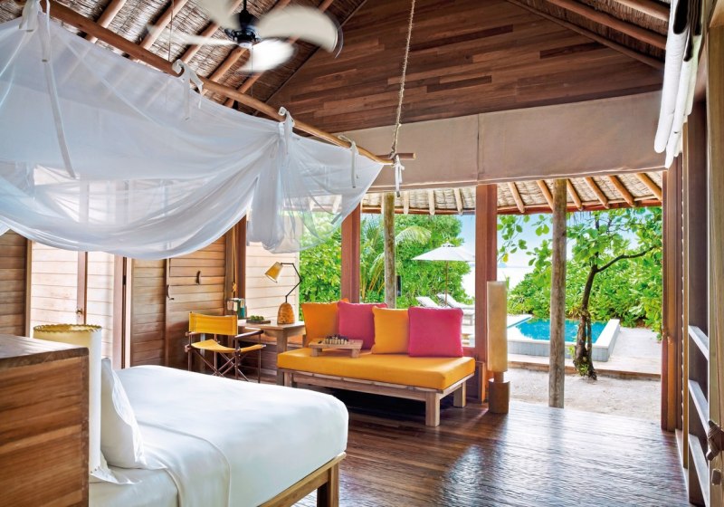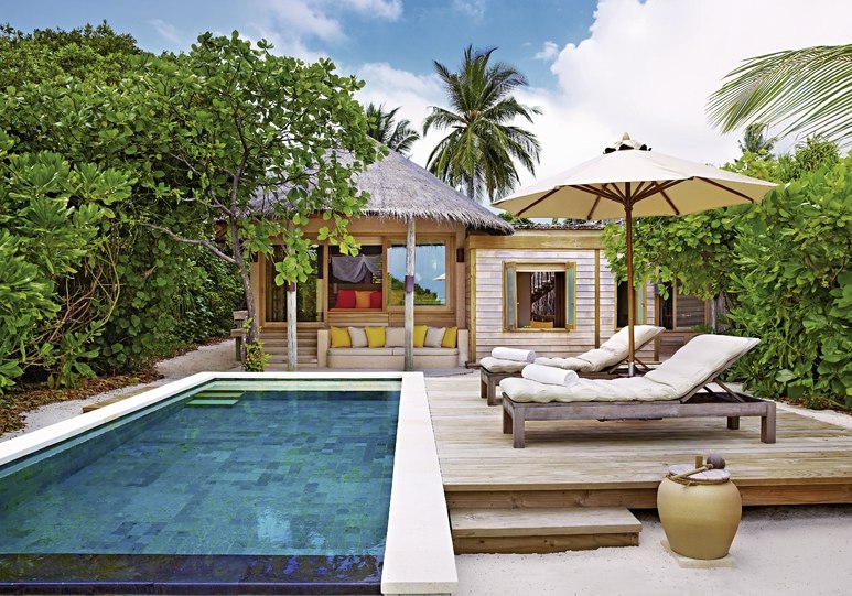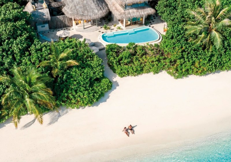 Six Senses Laamu liegt auf einer privaten Insel im Laamu-Atoll. Ihr erreicht das Resort per Wasserflugzeug in etwa 65 Minuten. Die Atmosphäre ist lässig-gehoben, mit Naturmaterialien und viel Raum. Zwischen Lagune, Strand und dem großen Pool bewegt Ihr Euch entspannt, während das Meereszentrum SHELL Wissen über die Umgebung vermittelt.