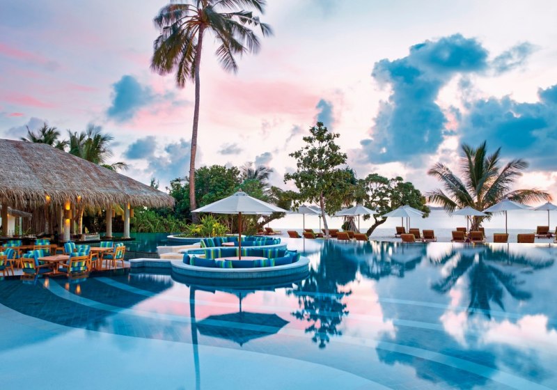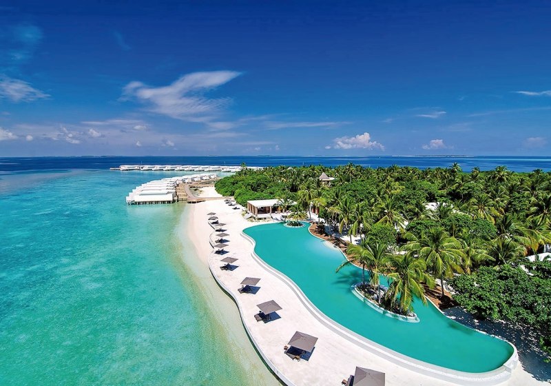 Die Villen stehen wahlweise am Strand oder auf Stelzen über der Lagune, mit direktem Zugang ins Meer oder an den Strand. Kulinarisch erwartet Euch eine Vielfalt von japanischer Küche bis Garten- und Fischküche, ergänzt durch Bars, Weinkeller und ein Ice & Chocolate Studio. Für Familien sind Kids Club und Kinderbetreuung an Bord.