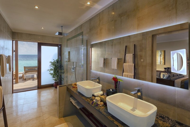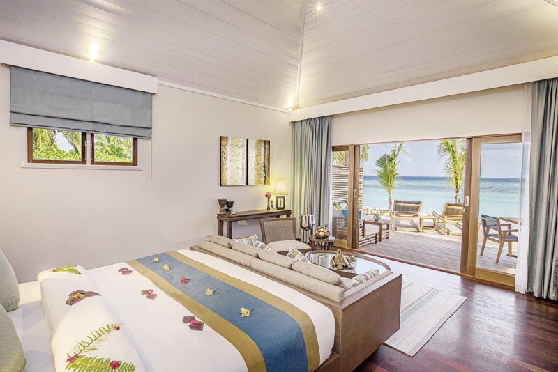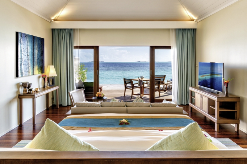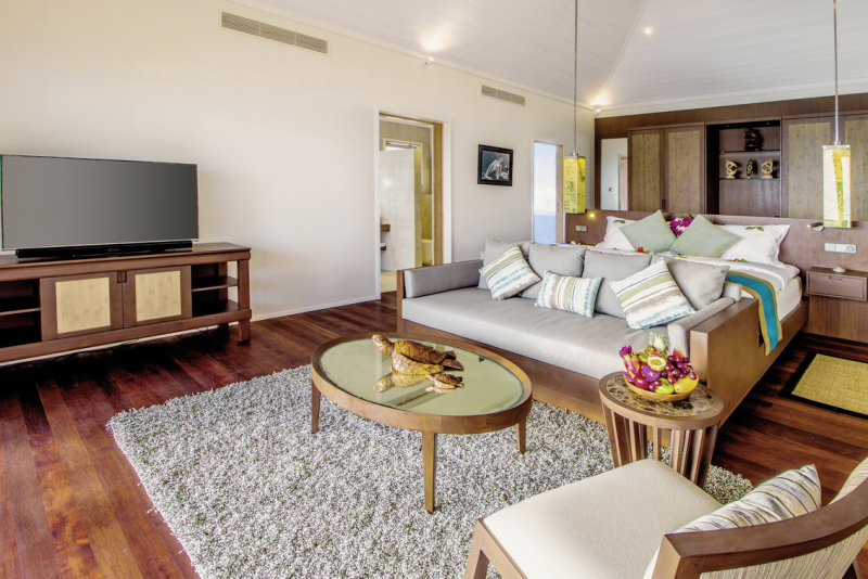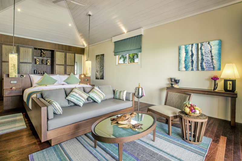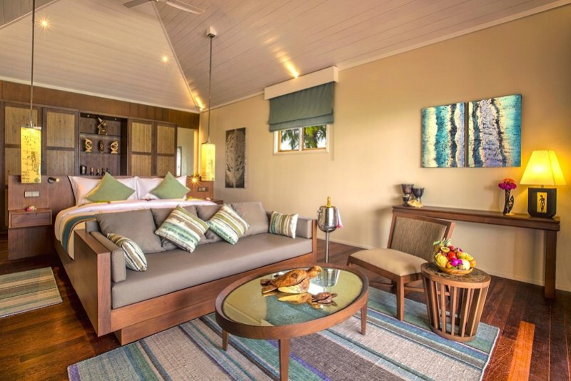 Die 90 geräumigen und komfortablen Zimmer des Resorts sind auf Stelzen über dem Wasser oder in Strandnähe gelegen und verfügen über eine Vielzahl von Annehmlichkeiten wie eine private Terrasse oder Balkon, Minibar, Kaffeemaschine, Flachbildschirm, WLAN und viele andere. Einige Zimmertypen bieten zudem den Zugang zum Meer oder einen privaten Pool, womit für ein unbeschreibliches Urlaubserlebnis gesorgt ist.
