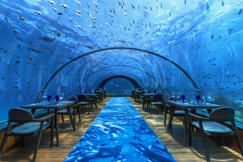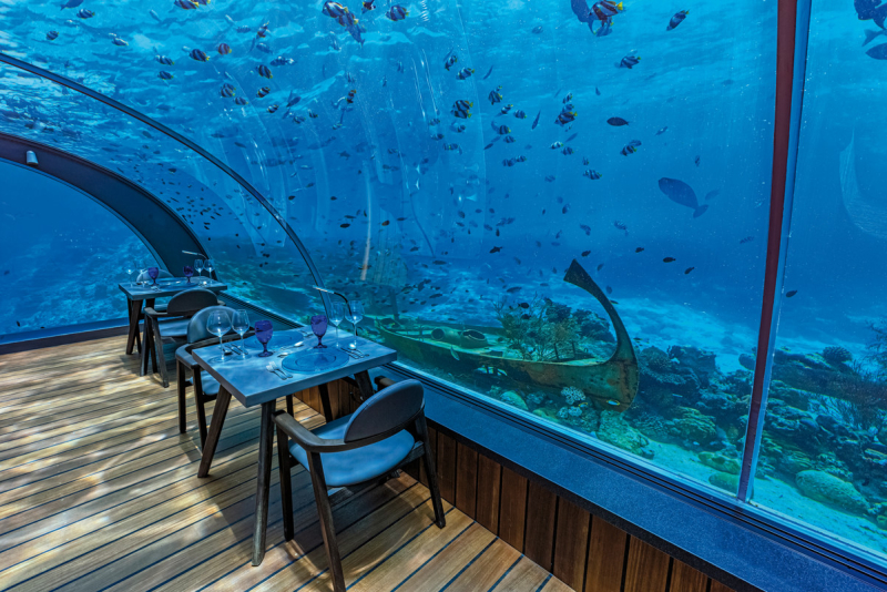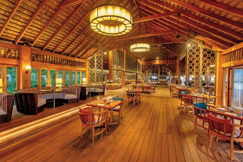 Das Hurawalhi Island Resort ist ein wahres Paradies für Feinschmecker. Es beherbergt insgesamt vier Restaurants, darunter das Buffetrestaurant 'Canneli', das asiatische Küche servierende 'Kashibo' und das Gourmetrestaurant '5.8 Undersea', ein spektakuläres Unterwasserrestaurant. Mit All-Inclusive-Verpflegung können die Gäste rund um die Uhr verschiedene lokale alkoholische und alkoholfreie Getränke sowie Snacks genießen.