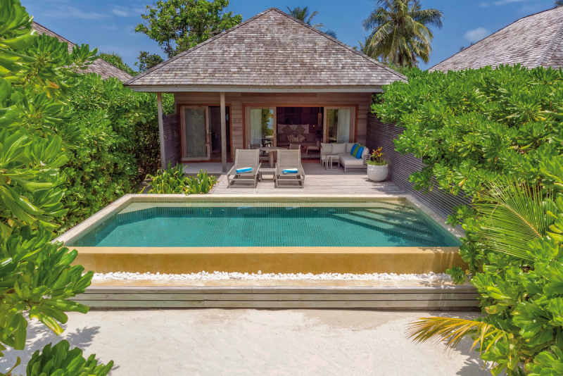 Die atemberaubende Lage des Resorts inmitten der Natur, direkt am Strand auf einer Insel, macht es zu einem idealen Ort für alle, die einen ruhigen und abgeschiedenen Rückzugsort suchen. Durch das nur 70 Meter entfernte Hausriff ist das Resort auch ein Paradies für Schnorchler. Ein feinsandiger, weißer Sandstrand und die umliegende tropische Flora vermitteln ein Gefühl von Ruhe und Harmonie.