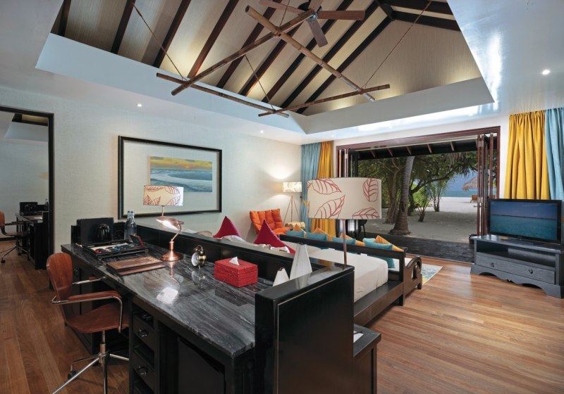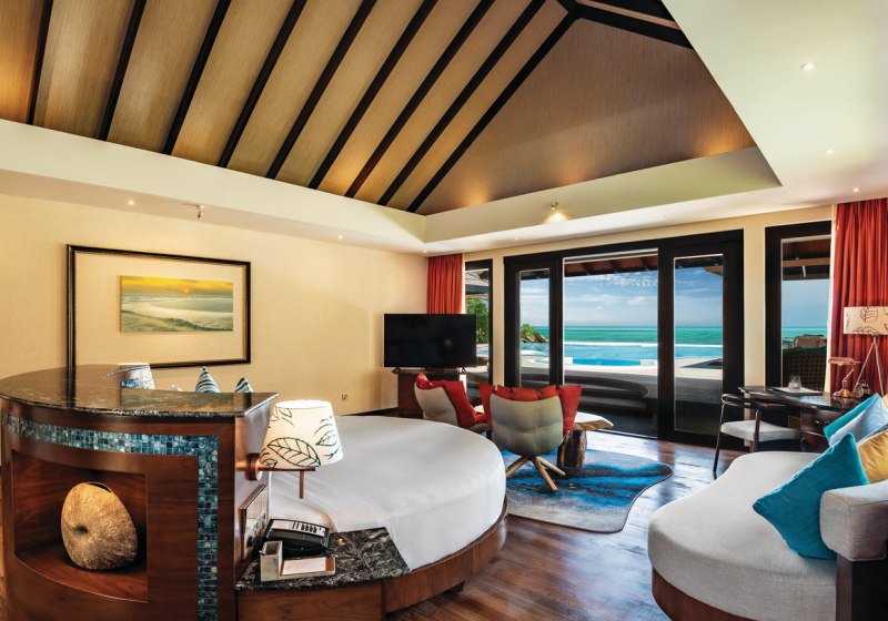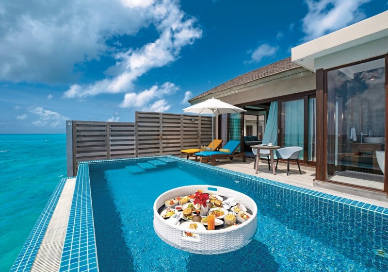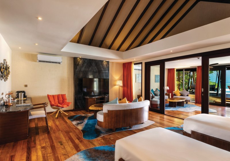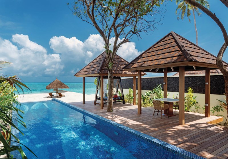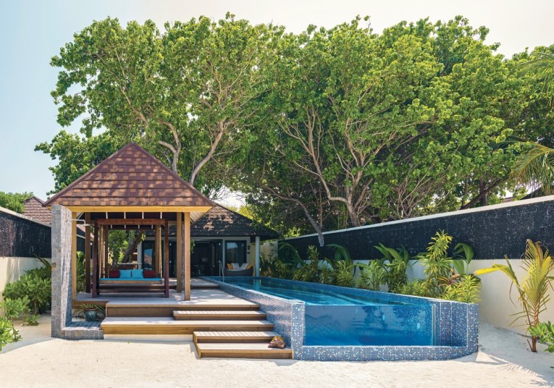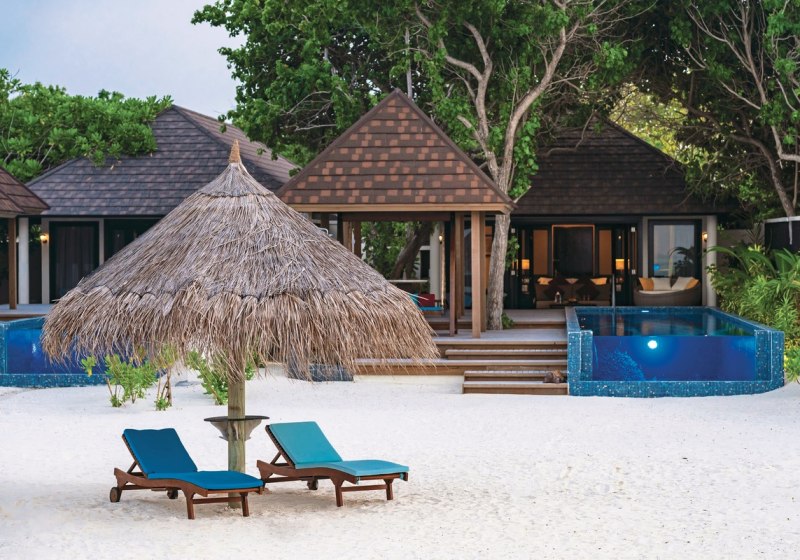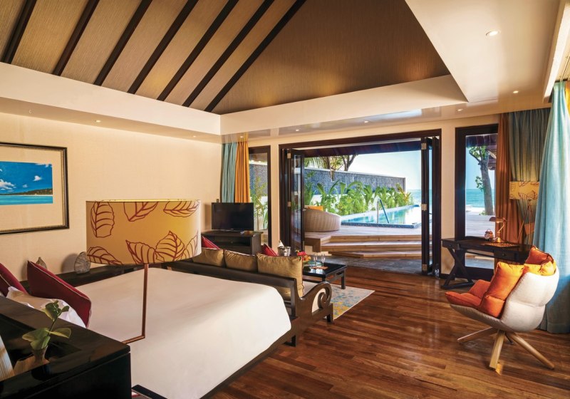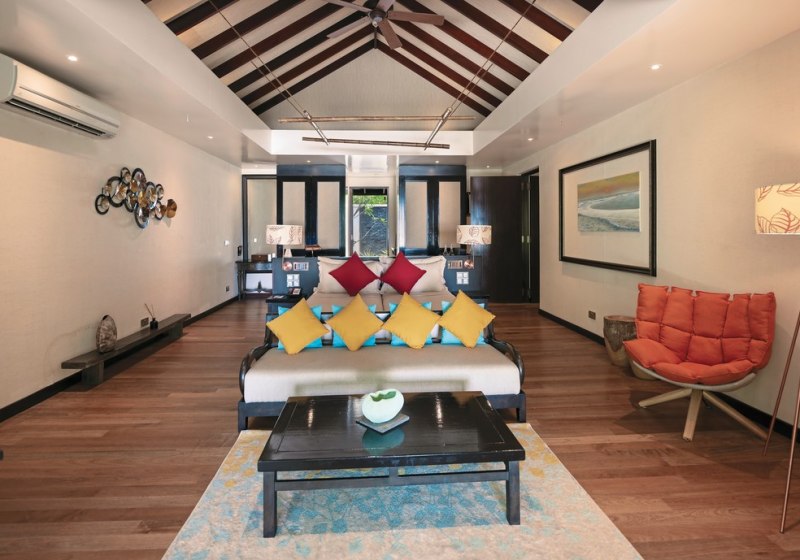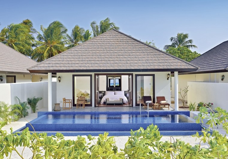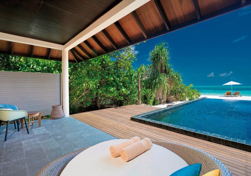 Pool Beach Villa Sunset (rund 192 Quadratmeter) und Beach Villa Pool setzen auf private Becken, teils um etwa 30 Quadratmeter, sowie großzügige Außenbereiche mit Daybed. Zur Ausstattung zählen Klimaanlage, Ventilator, Safe, Flat-TV, CD-/DVD-Player, Telefon, iPod-Dock, Minibar sowie Tee- und Kaffeezubereiter. Highlight: Großzügige Außenbereiche mit Daybed für ungestörte Stunden.
