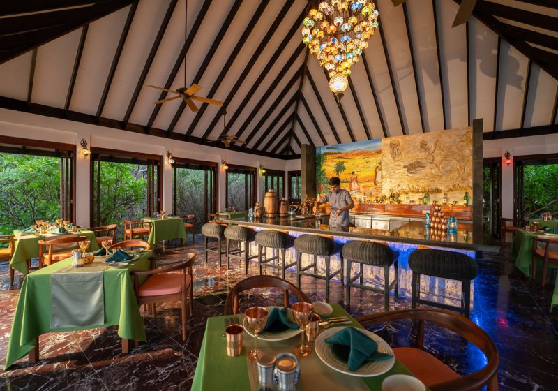 Im Hauptrestaurant The Spice genießt Ihr vielfältige Küche, flankiert von Spezialitätenadressen: The Sunset am Wasser, Just Veg mit vegetarischen Kreationen, ein Teppanyaki-Erlebnis sowie Ceylon Bliss mit srilankischen Aromen. The Liquid und die Sunset Bar setzen frische Akzente im Glas. Highlight: Klare kulinarische Vielfalt von vegetarisch bis srilankisch an einem Ort.
