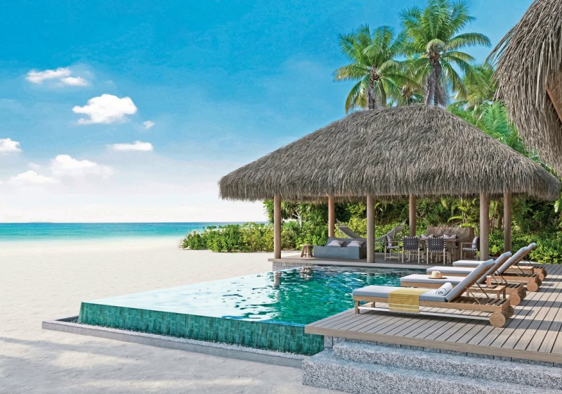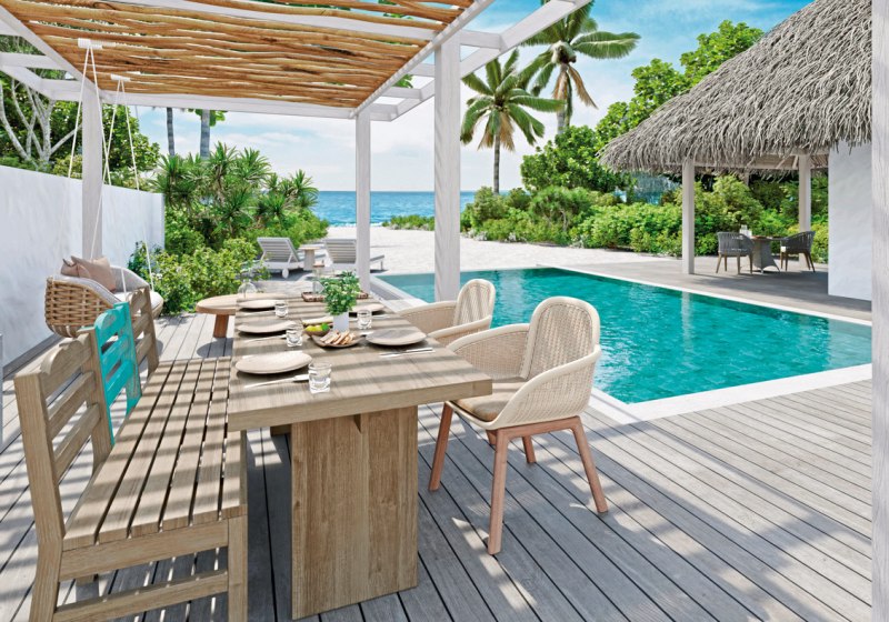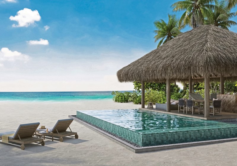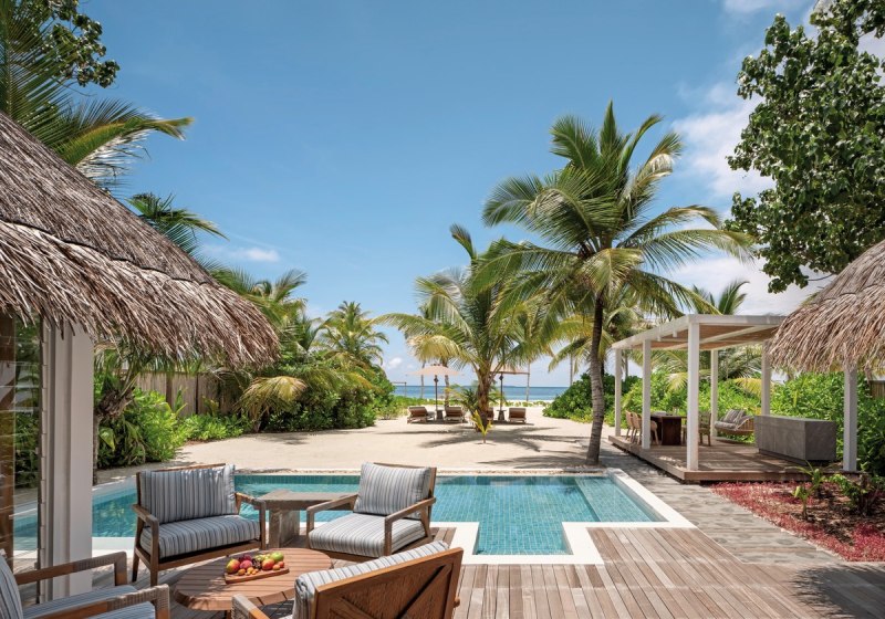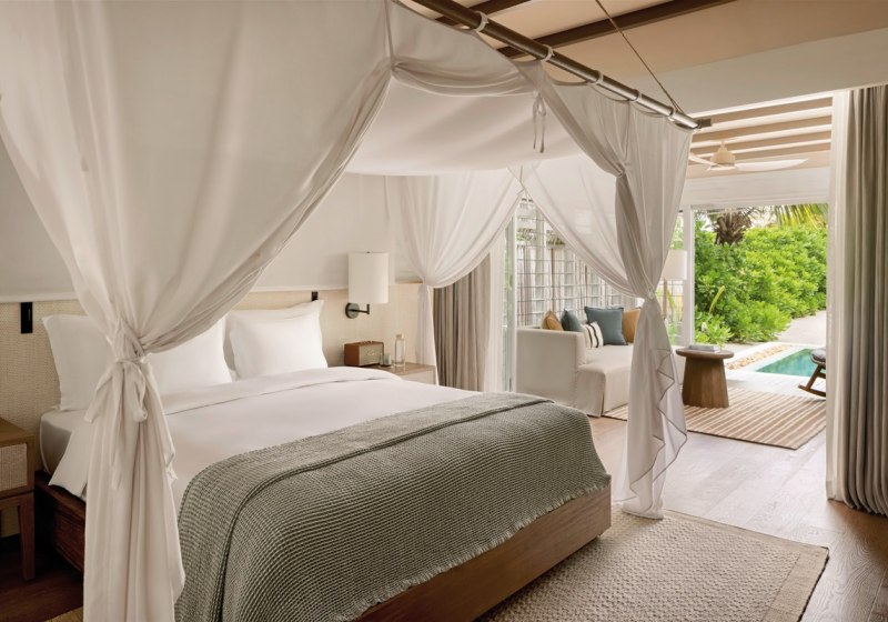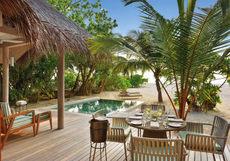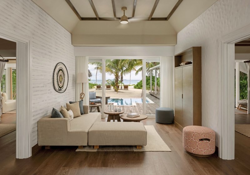 Auf einer rund 1,4 Kilometer langen und etwa 350 Meter breiten Insel empfängt Euch Six Senses Kanuhura mit 80 Bungalows und Villen, verteilt zwischen Strand und Lagune. Die Atmosphäre bleibt entspannt, mit viel Raum am Pool, am Strand und in ruhigen Rückzugsorten wie Bibliothek und Lava-Lounge. Ihr spürt unmittelbare Nähe zum Wasser, unterstützt durch das Wassersport- und Tauchzentrum am Strand.