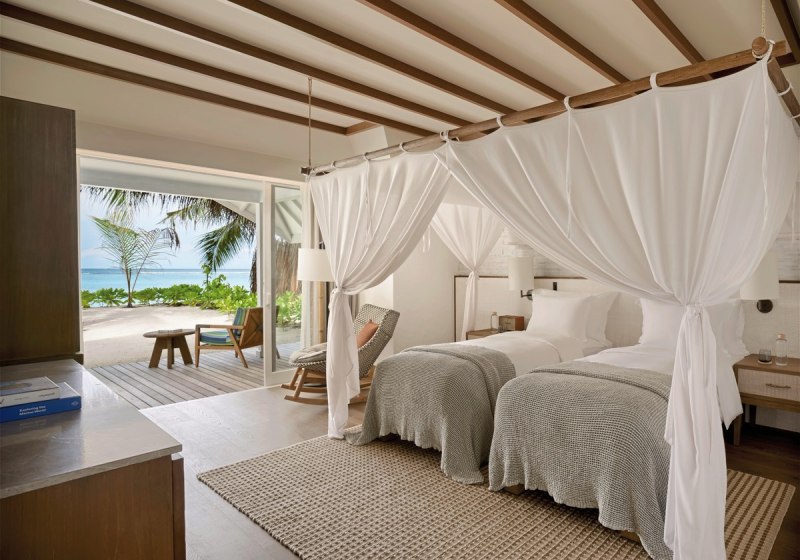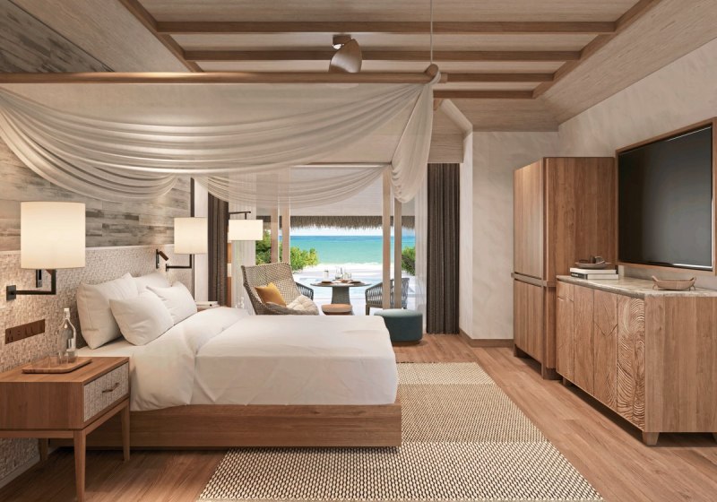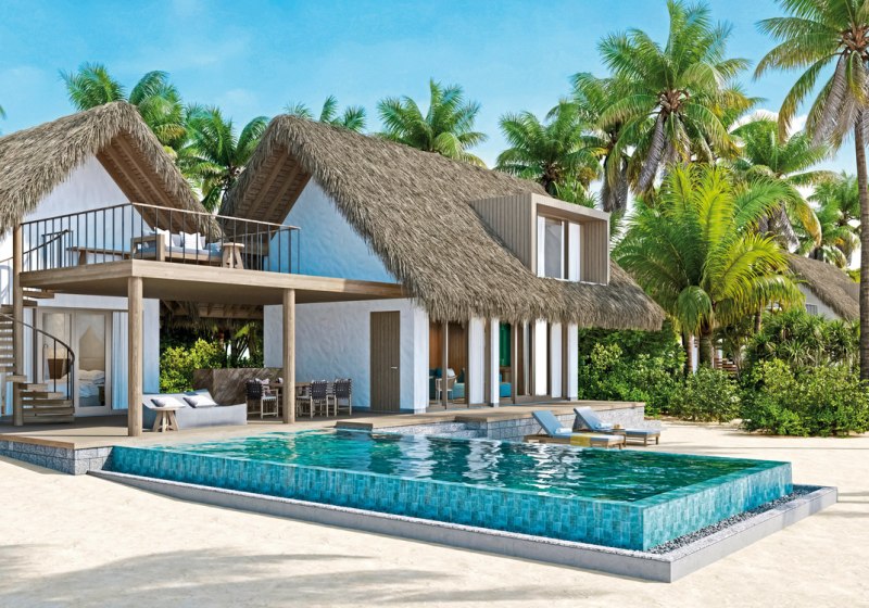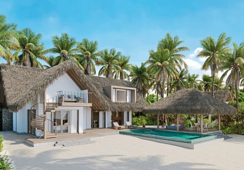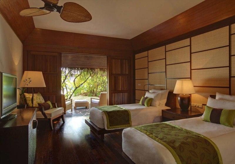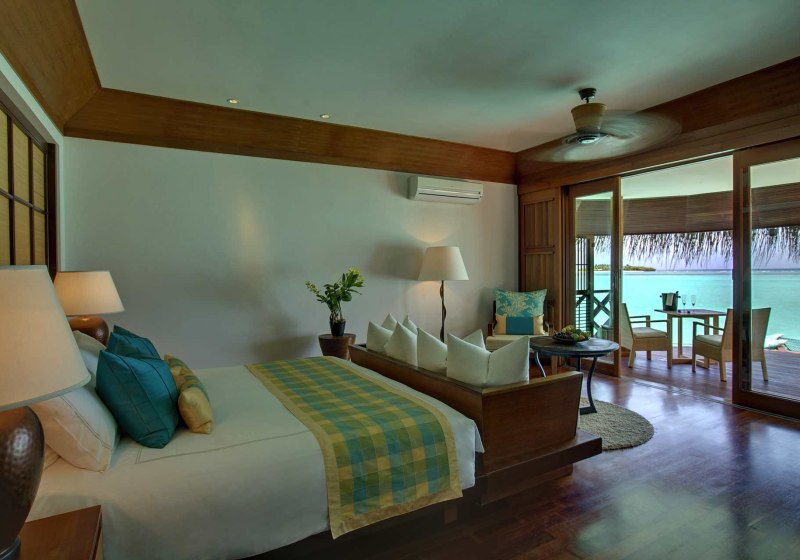 Beach Villas bieten zusätzlich Safe und CD-/DVD-Player; einige Villen verfügen über einen privaten Pool. Die Water Villas stehen auf Pfählen über dem Meer und öffnen den direkten Zugang zur Lagune. So entscheidet Ihr zwischen Strandgefühl oder Wasserperspektive. Highlight: Markante Wasserlage der Villas mit direktem Lagunenzugang.