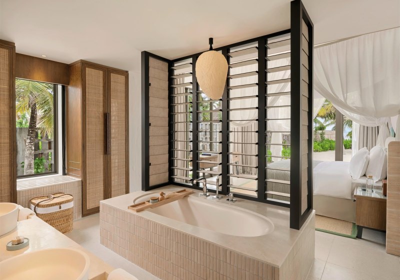 Mit 80 Bungalows und Villen bleibt das Resort überschaubar. Bibliothek, Games Room und Lava-Lounge ergänzen die ruhigen Flächen um Orte für leise Aktivität. So entsteht ein unaufgeregtes Insel-Layout, das Orientierung bietet. Highlight: Kurze Wege zwischen Villa, Strand, Pool und den Aktivitätsbereichen.