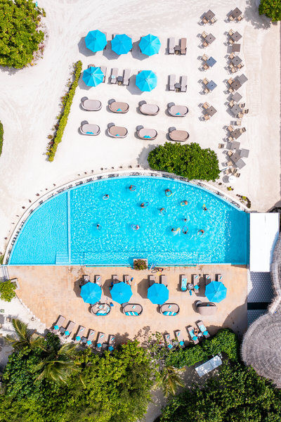 Auf der Insel Ookolhufinolhu im Lhaviyani-Atoll gelegen, verbindet Cocoon Maldives direkte Strandlage mit guter Erreichbarkeit: Der Transfer vom internationalen Flughafen erfolgt per Wasserflugzeug in rund 30 Minuten. Die Umgebung präsentiert sich als inseltypische Kulisse mit Strandzugang und Strandbar, die Wege bleiben angenehm kurz. So richtet Ihr Euch schnell ein und plant Eure Tage rund um Meer, Pool und zentrale Treffpunkte.