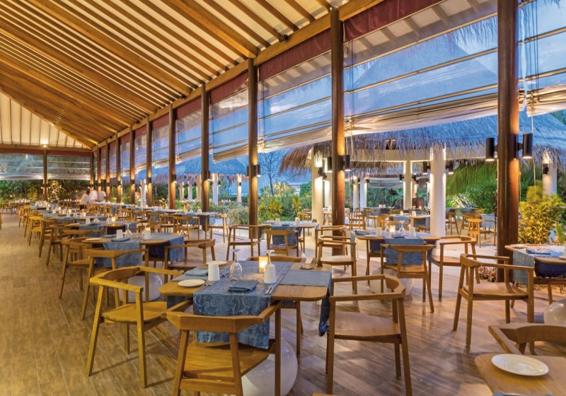 Drei Restaurants geben Euren Tagen eine genussvolle Taktung: Das Octopus Restaurant serviert internationale Küche mit Live-Kochen, im Japanese Garden erlebt Ihr Teppanyaki am Grill, und das Manta Overwater Restaurant setzt auf die besondere Lage über dem Wasser. Zwei Bars und eine Strandbar runden das kulinarische Bild ab.