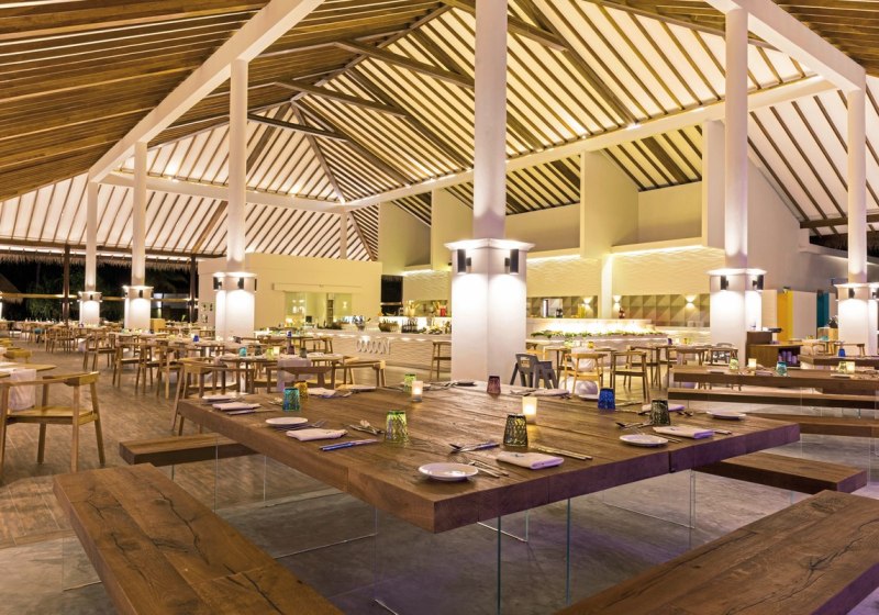 Die Mischung aus Beach Villen mit direktem Strandzugang und auf Stelzen errichteten Lagoon Villen mit Meerzugang prägt das Gefühl von Nähe zum Wasser. Familien nutzen den Kinderclub mit Indoor-Spielplatz und Kinderpool, während Aktive sich auf Sportanimation und vielfältige Wassersportangebote freuen. Abends bilden Abendunterhaltung, Live-Musik und Nachtclub den lebhafteren Gegenpol zur stillen Inselstimmung. Kulinarisch erwartet Euch ein Trio aus internationaler Küche, Teppanyaki-Grill und Überwasser-Setting – getragen von zwei Bars und einer Strandbar. So entsteht ein Aufenthalt, der durchdacht, nuanciert und angenehm fokussiert wirkt.