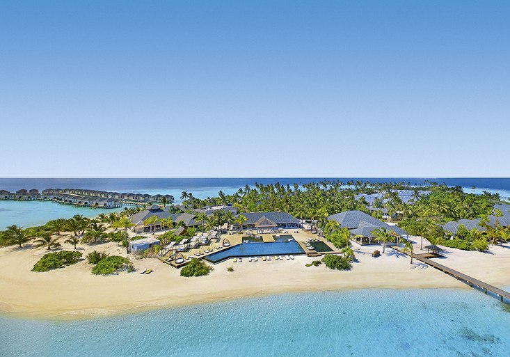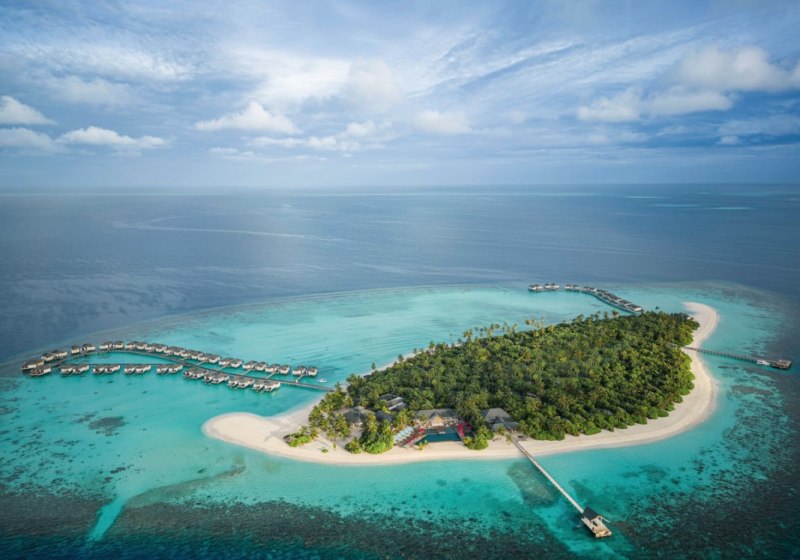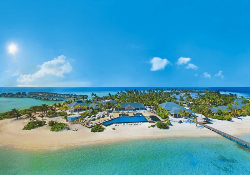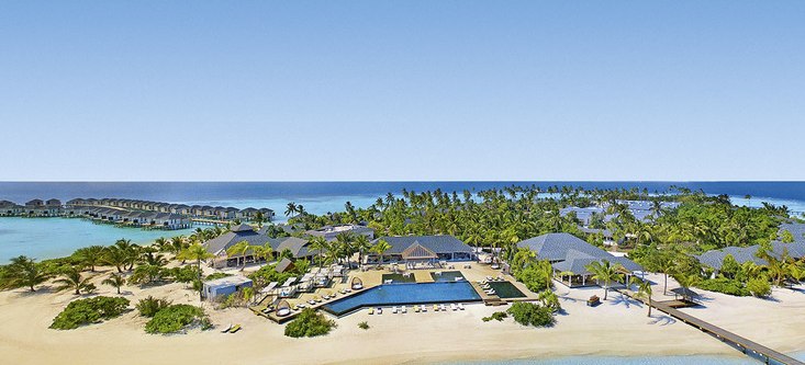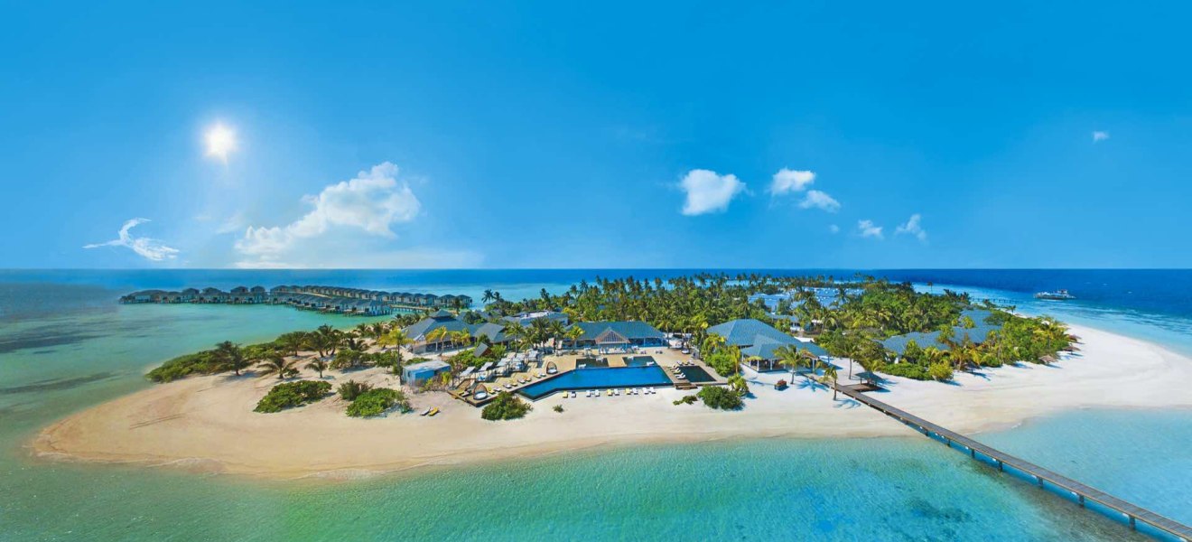 Das Resort liegt im Gaafu Dhaalu Atoll. Die Anreise erfolgt laut Angabe mit etwa 55 Minuten Inlandsflug ab Malé und anschließenden rund 10 Minuten per Speedboat. Die Insel misst ungefähr 250 mal 800 Meter, wodurch Wege überschaubar bleiben und Ihr Euch schnell orientiert. Ihr bewegt Euch zwischen Strand, Wasservillen-Steg, Restaurants und Freizeitangeboten ohne lange Distanzen.