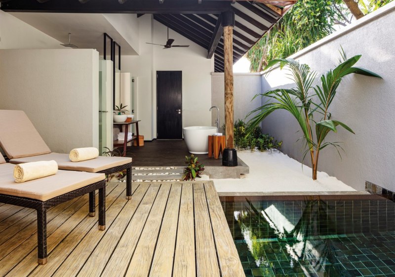 - Klarer Komfort: Großzügige Beach Villas mit halb‑offenem Bad und Terrasse.