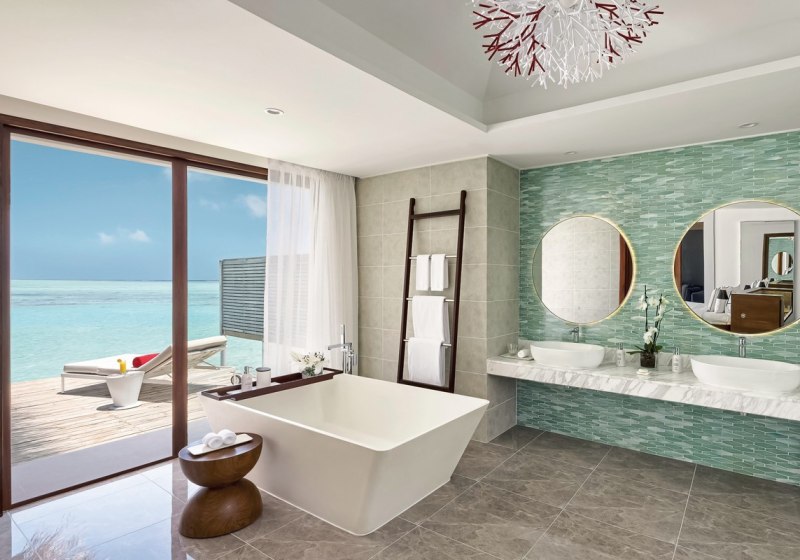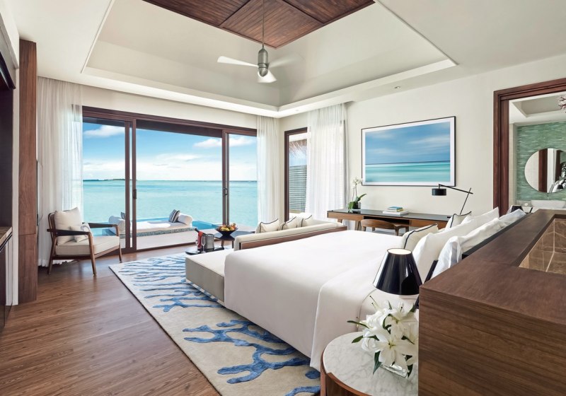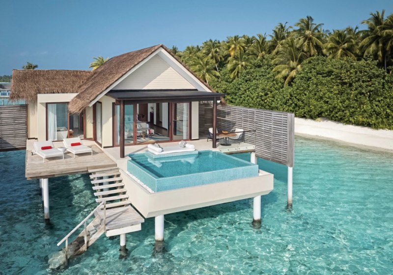 Die Beach Villa mit Pool erweitert auf etwa 190 m² und schenkt Euch einen privaten Pool. Über dem Wasser setzt die Water Villa mit Pool (ca. 175 m²) mit geschlossenem Bad, großem Sonnendeck, Privatpool und direktem Meerzugang klare Akzente. Bademantel, Slipper und Föhn liegen bereit.