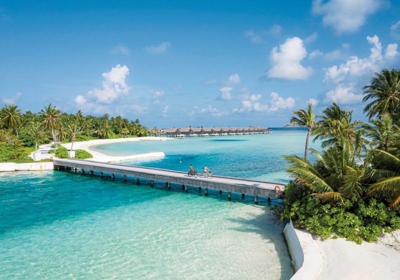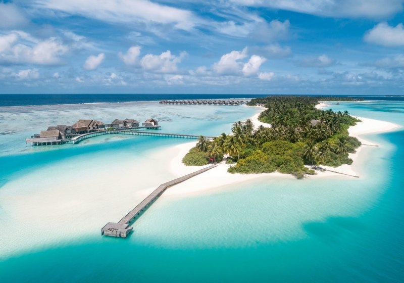 Ihr erreicht das südliche Dhaalu-Atoll per rund 30-minütigem Inlandsflug ab Malé und kurzer Bootsfahrt. Alternativ ist ein Wasserflugzeug-Transfer möglich. Niyama Private Islands Maldives liegt auf zwei Inseln, verbunden durch einen Steg; das Außenriff wartet in etwa 200 Metern Distanz – ideal für kurze Wege zum Schnorcheln.