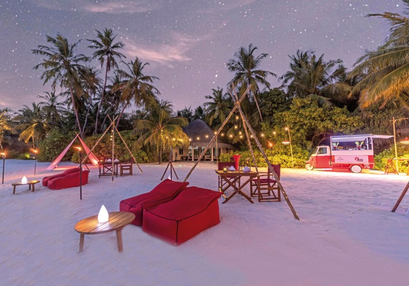 - Rooftop Sundowner: Fahrenheit serviert Drinks mit Höhenblick über das Atoll.