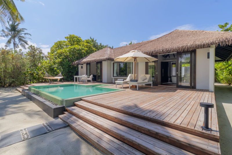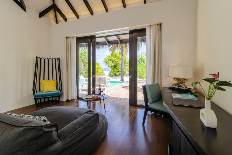Die Zimmer und Villen im Noku Maldives, Vignette Collection sind äußerst komfortabel und geräumig, mit Größen zwischen 175 und 400 Quadratmetern. Sie verfügen alle über eine Terrasse mit Blick auf den Ozean oder den Garten und bieten Annehmlichkeiten wie WLAN, Safe, Minibar und Klimaanlage. Einige Villen verfügen sogar über private Pools.