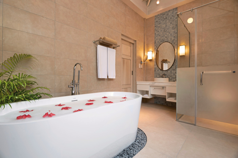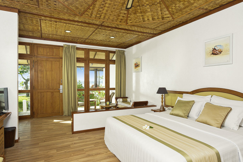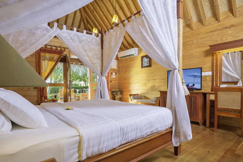 Das Hotel bietet eine Auswahl an charmanten, gemütlichen Zimmern und Villen, die rustikal und landestypisch gestaltet sind. Sie sind mit Annehmlichkeiten wie einer Klimaanlage, einer Minibar, WLAN und einem Safe ausgestattet. Je nach Zimmerkategorie können die Gäste auch Annehmlichkeiten wie eine freistehende Badewanne, eine Whirlpool-Badewanne oder direkten Zugang zum Strand genießen.