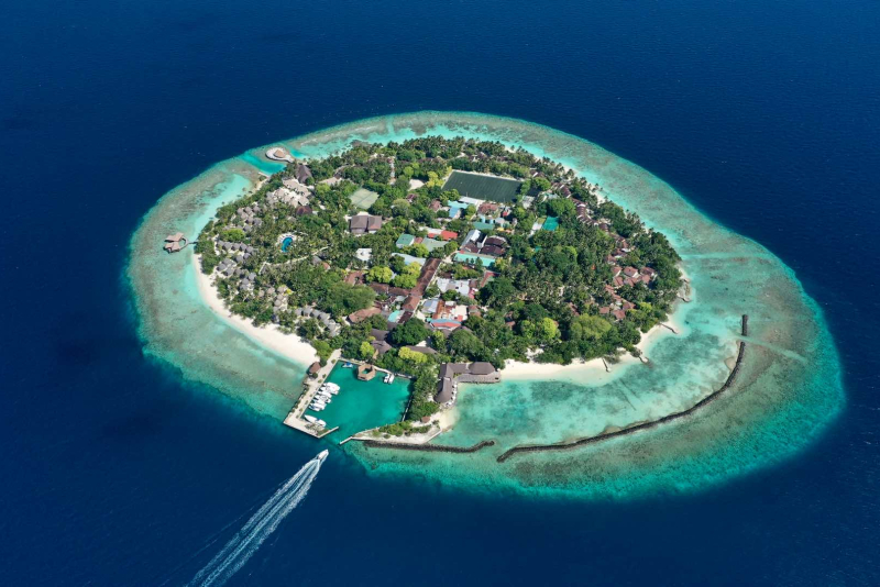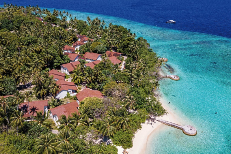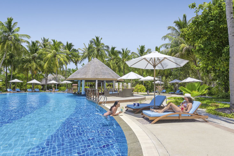 Das Hotel liegt idyllisch direkt am Strand, am Meer und auf einer tropischen Insel. Es befindet sich etwa 7 km vom Flughafen Male International Airport entfernt. Das Hotel zeichnet sich durch seine atemberaubende, feinsandige, helle Sandstrandlage aus und ist von einem atemberaubenden Hausriff umgeben. Die Entfernung zum Hausriff beträgt ca. 40 Meter.