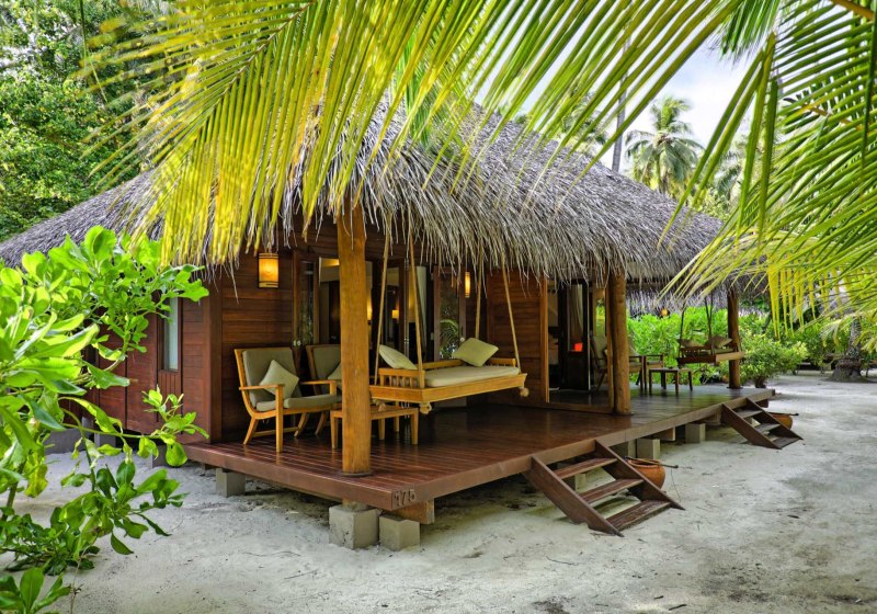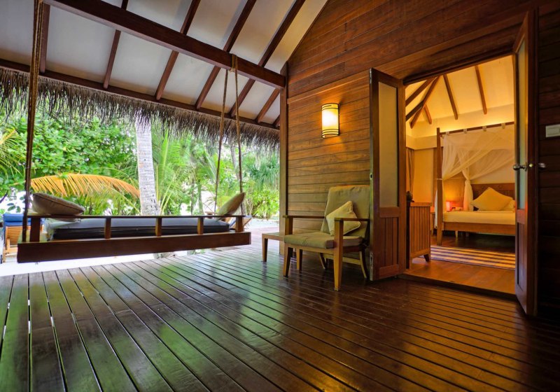 Wer das Wasser näher spüren will, wählt eine Water Villa mit rund 60 Quadratmetern, geschlossenem Bad und Sonnendeck samt Treppe direkt ins Meer. Die Beach Villa Semi Detached teilt sich das Dach mit der Nachbarhälfte, bleibt im privaten Bereich aber eigenständig. Für mehr Platz besteht die Beach Suite aus zwei verbundenen Beach Villen mit überdachter Outdoor-Sitzmöglichkeit.