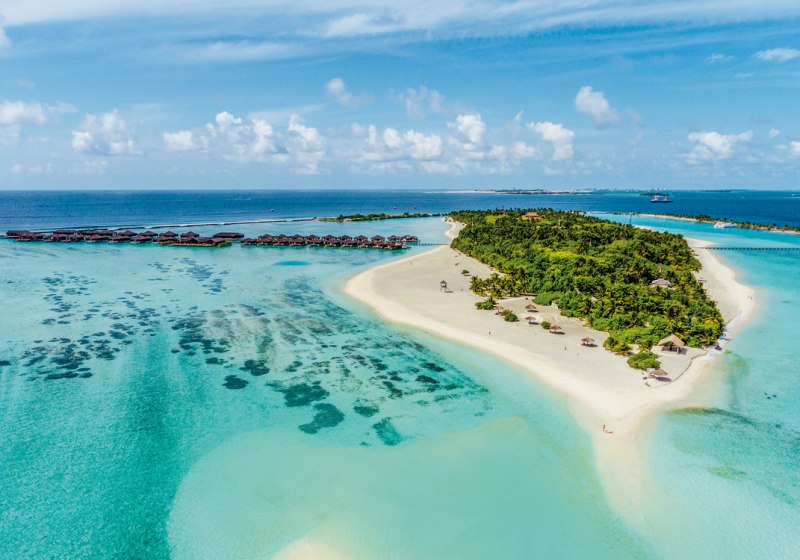 Die Insel liegt im Südosten des Nord-Male-Atolls, etwa 900 Meter lang und 200 Meter breit. Der Transfer vom Flughafen dauert rund 20 Minuten per Speedboot. Diese Nähe sorgt für einen reibungslosen Start in die Ferien, ohne lange Wartezeiten. Der Strand rahmt die Wege, eine Lagune umgibt die Villen, und eine Strandbar ergänzt die Szenerie.
