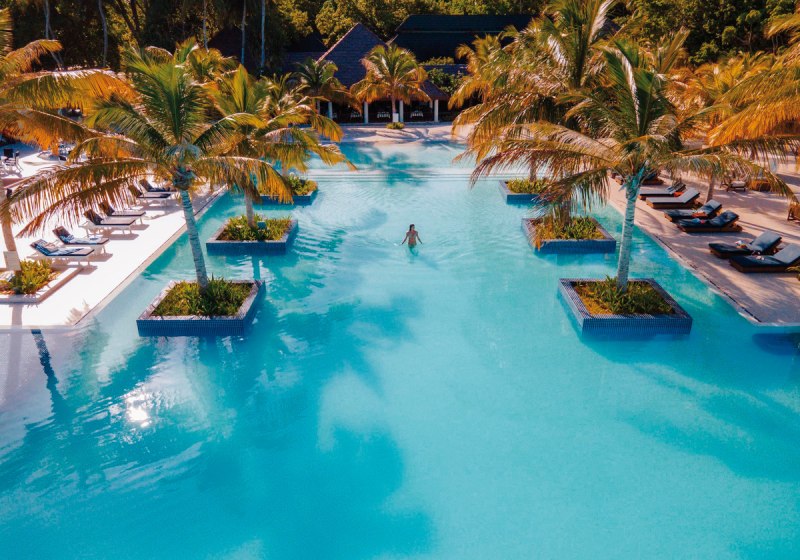 - Pools & Decks: Süßwasserpool, Kinderbecken und Sonnenterrassen mit Liegen.