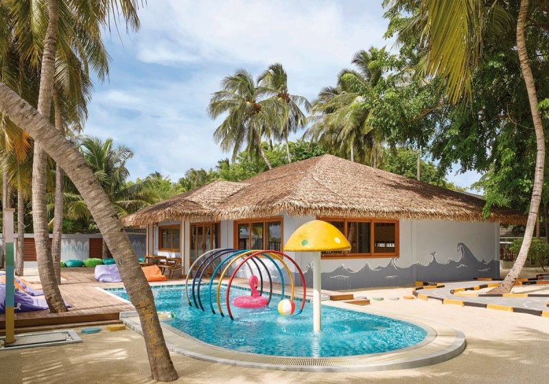 Zur Auswahl stehen Strand Villa, Deluxe Beach Villa Pool mit privatem Infinity-Pool, Sunset Beach Pool Villa mit Pool, Water Villa auf Stelzen mit direktem Lagunenzugang sowie Water Villa Jacuzzi mit Jacuzzi auf dem Sonnendeck. Familien profitieren von Platzangebot und Zustellbettoptionen.