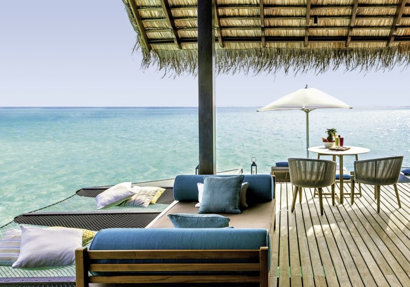 - Überwasserblick: Hängematten über dem Wasser und verglaste Bäder in Water Villas.